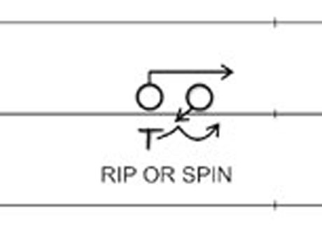 The final drill addresses those few times where we have to play straight up against larger O-linemen. The drill consists of the players using their various tools on the blocking sled. The tools we practice are the rip, swim and spin move.