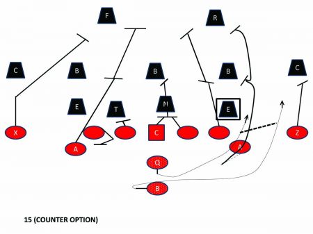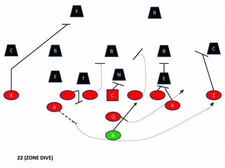 This article will diagram and explain three very important plays that any triple option team should have as part of their offensive strategy in order to ensure that their B-back stays relevant and effective during a game. They include 22 (Zone Dive), 15 (Counter Option) and the Rocket Pass.