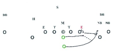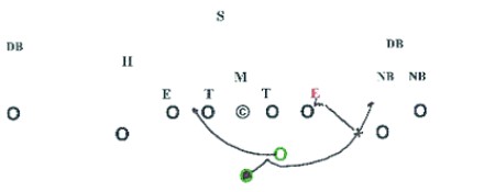 The DEs I see today are completely puzzled defending the shotgun option game. Coaches should go back to how the T-option was defended years ago. This is what I call the soft technique employed by the DE versus the T-option. The soft technique was not very successful defeating the T option game, but I believe the soft technique by the DE would be far more successful versus the shotgun option between the QB and RB.